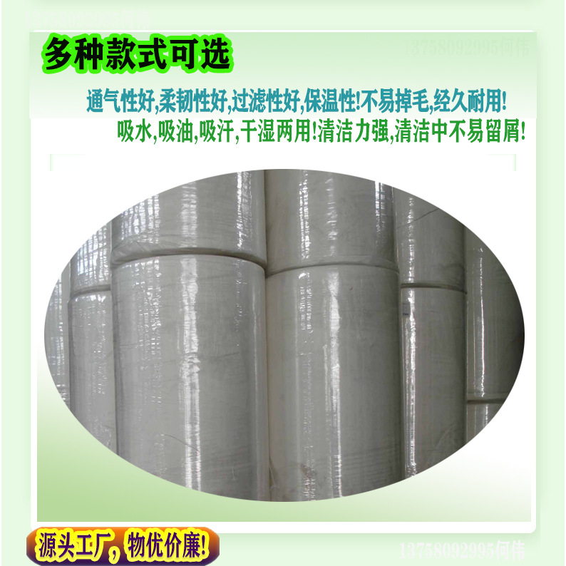 富瑞森 原料粘膠 滌綸 棉 木漿 PP等 克重40-200克 寬度10-320CM 用途抹布 濕巾 膏藥底布 美容卸妝 口罩 防護(hù) 等 優(yōu)點(diǎn)可根據(jù)客人需求的顏色 克重 材質(zhì) 規(guī)格 定制生產(chǎn)